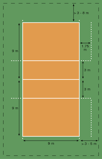 Jarak dari home base (marka pelari) ke posisi pelempar (pitcher plate) adalah 13,07 . Jarak home base/home plate (marka pelari) dengan pitcer's . Ukuran lapangan bola basket dalam permainan 5v5 umumnya memiliki panjang 28 meter dan lebar 15 meter. Panjang lapangan softball adalah 16,76 sampai 18,29 meter. Sedangkan garis gawang dua garis yang lebih pendek.
